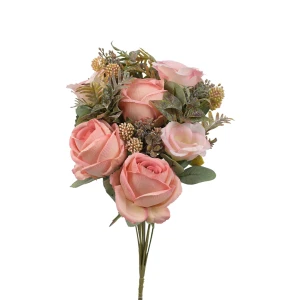 Kwiat sztuczny bukiet róży angielskiej w kolorze różowym 47 cm