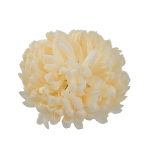 Sztuczna chryzantema wyrobowa w odcieniu brzoskwiniowym przyciąga uwagę swoim ciepłym, delikatnym kolorem oraz unikalnym kształtem przypominającym pióropusz. Każdy płatek, starannie wykonany z jedwabistej satyny zachwyca realistycznym wyglądem, precyzyjnie oddając każdy detal charakterystyczny dla naturalnego odpowiednika.