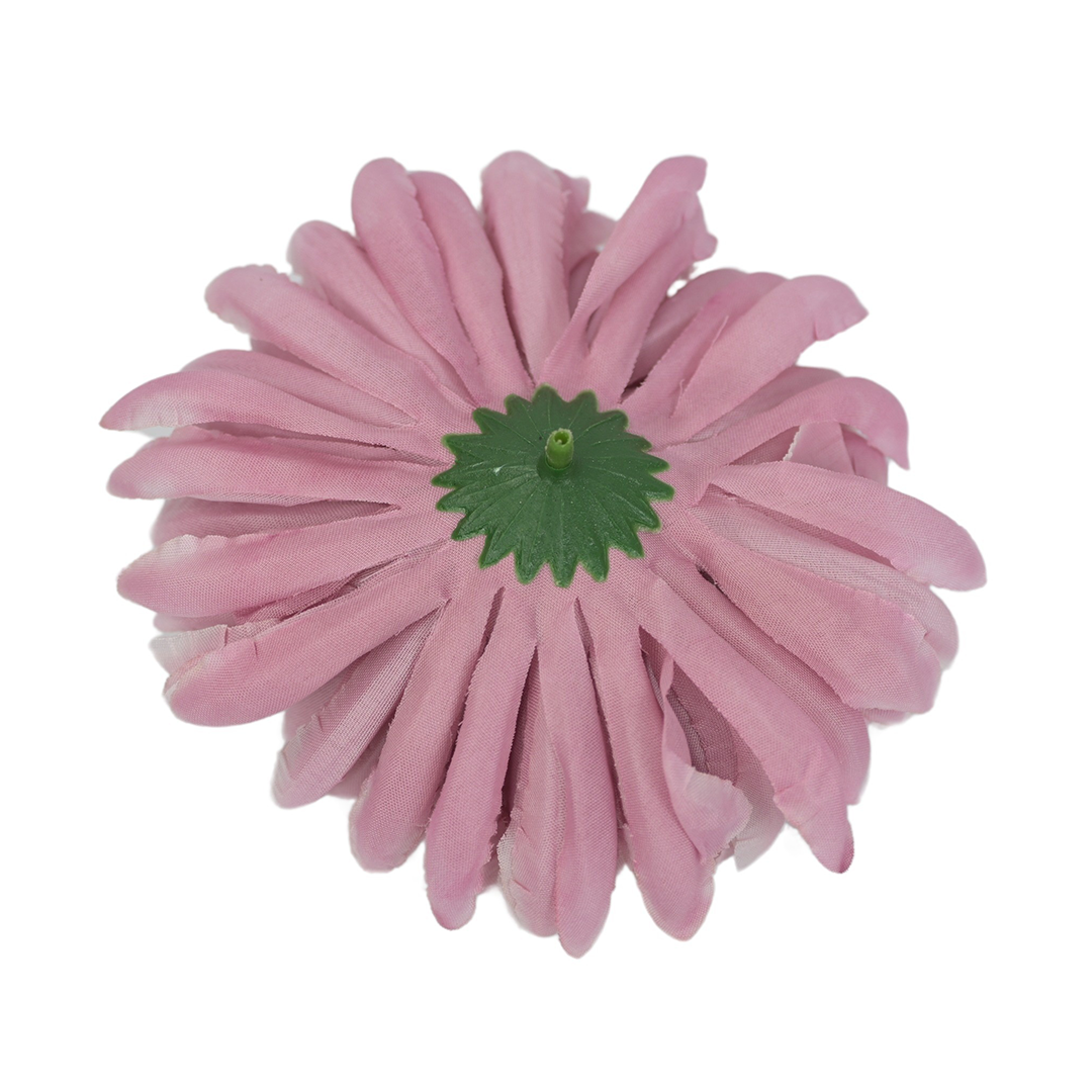 Jasnoróżowy kolor sztucznej chryzantemy wyrobowej symbolizuje delikatność, miłość i młodzieńczą świeżość. Jest to barwa, która wprowadza do wnętrza uczucie ciepła i romantyzmu. Główka wyrobowa jasnoróżowej chryzantemy doskonale komponuje się z białymi liliami, lawendą, jasnymi frezjami oraz zielonymi paprociami tworząc romantyczne kompozycje. Idealnie sprawdzi się w nowoczesnych bukietach, minimalistycznych aranżacjach oraz jako centralny element w eleganckich wieńcach.