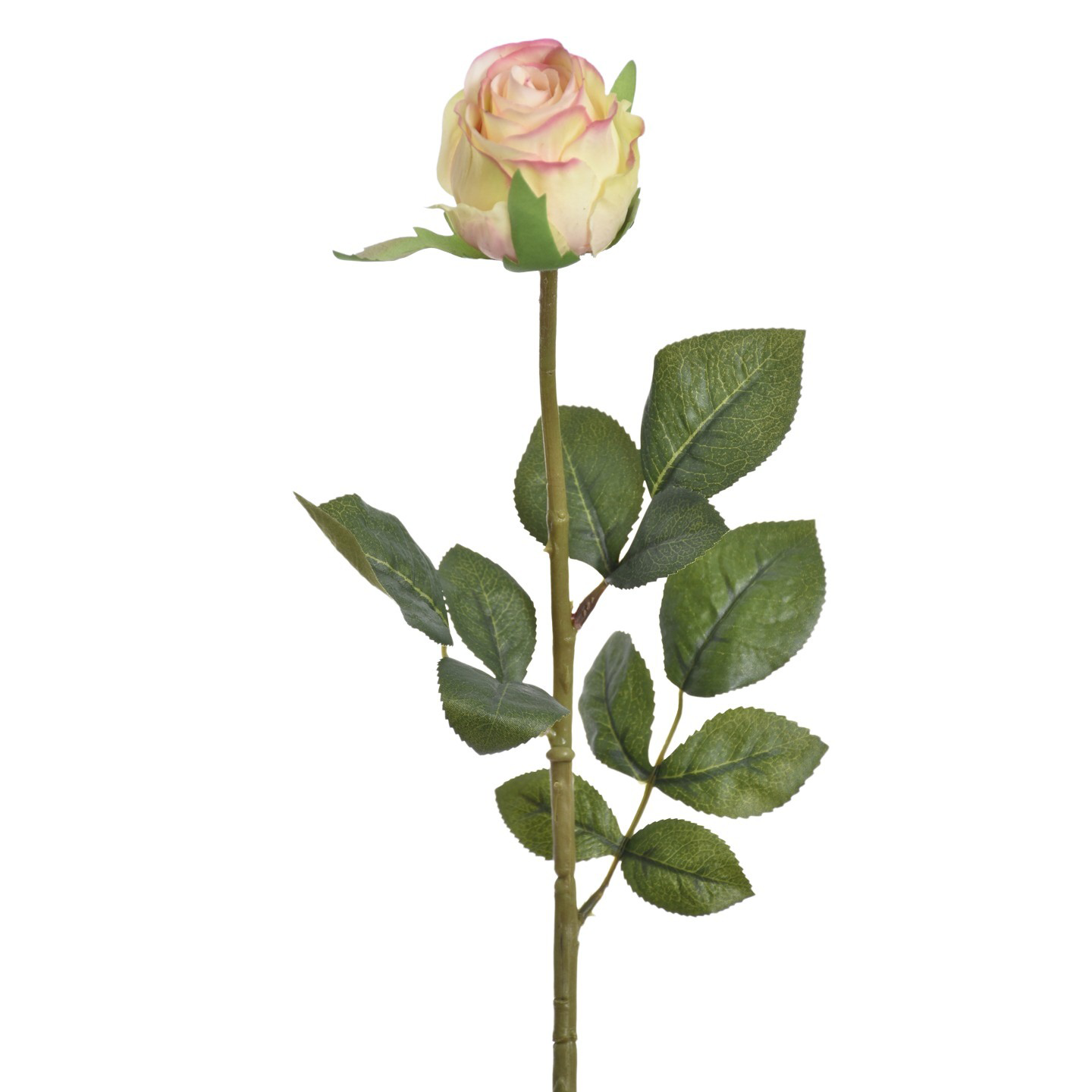 Sztuczna gumowa róża w pąku w kolorze różowo/zielonym 70 cm