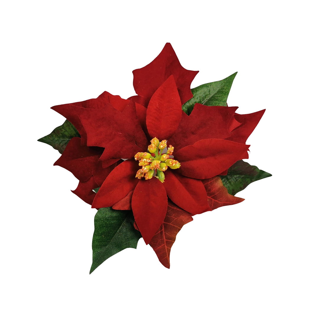 Sztuczny kwiat gwiazdy w bordowym kolorze idealnie wpisuje się w charakter bożonarodzeniowych dekoracji. To efektowna główka wyrobowa, która posłuży do takich ozdób jak wieńce, stroiki, choinki czy też inne kompozycje świąteczne. Kwiat gwiazdy sztucznej jest duży, dlatego floryści cenią go za ekonomiczny charakter. Jego symbolika niesie nadzieję i błogosławieństwo. Sztuczna gwiazda może być też używana do dekoracji walentynkowych czy ślubnych, ponieważ symbolizuje silne uczucie miłości i szczególny rodzaj duchowości. Welurowy materiał tworzy elegancką gwiazdę sztuczną, do złudzenia przypominającą żywy okaz.