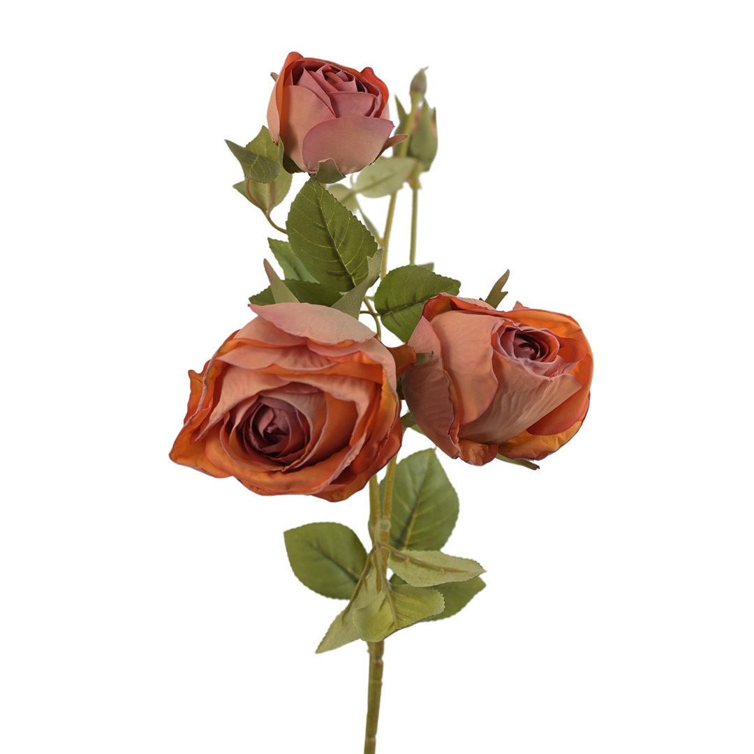 Walory użytkowe sztucznej róży w herbacianym kolorze idą tu w parze z estetyką. Satynowe płatki zapewniają efekt dopracowania, a neutralna, herbaciana paleta łatwo łączy się z bielą, ecru, zieleniami i ciemniejszymi burgundami. Gałązka sztucznych różyczek dobrze znosi zmienne warunki oświetleniowe, dlatego sprawdza się w przestrzeniach prywatnych i publicznych.