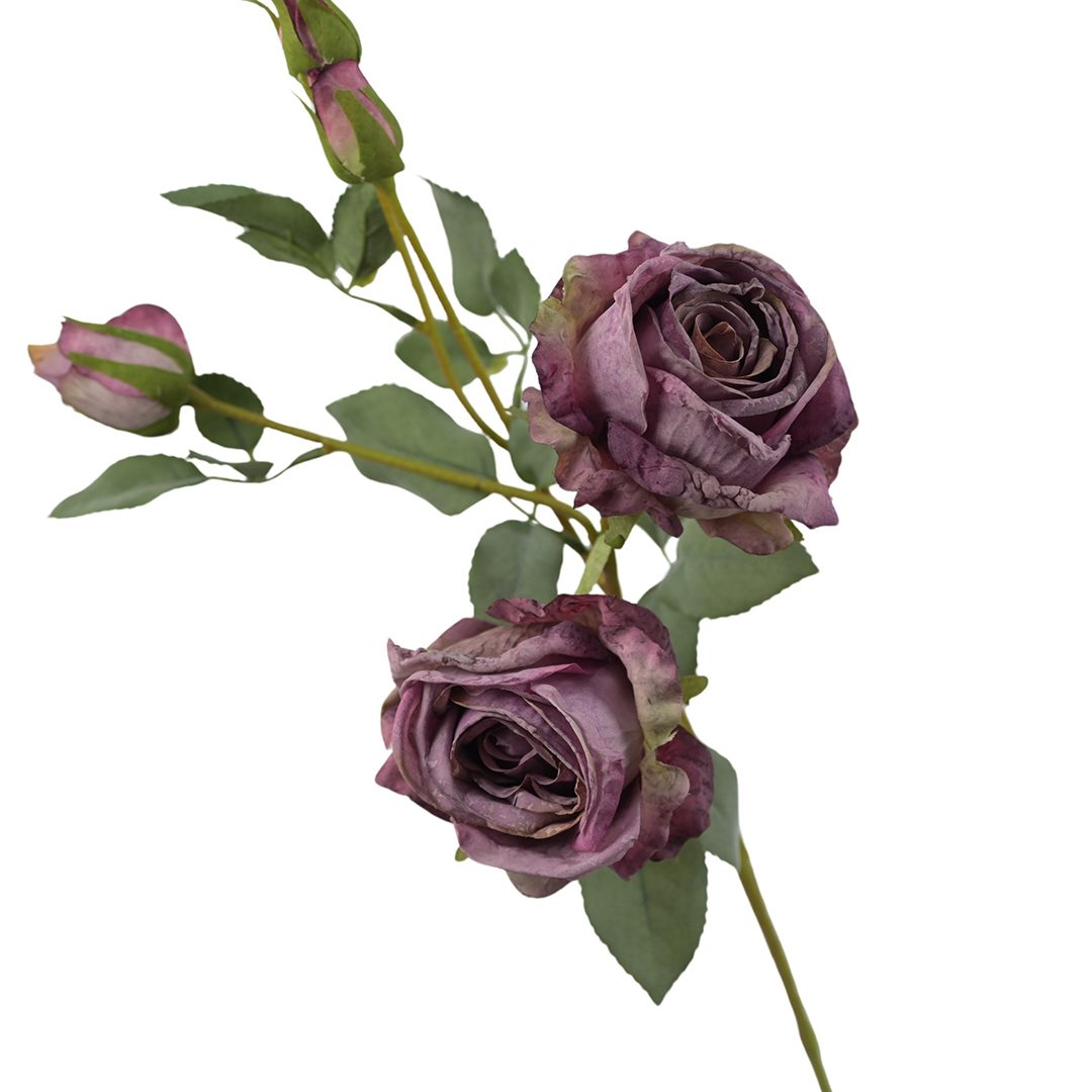 Sztuczna róża suszona gałązkowa w kolorze ciemnym fiolecie 68 cm