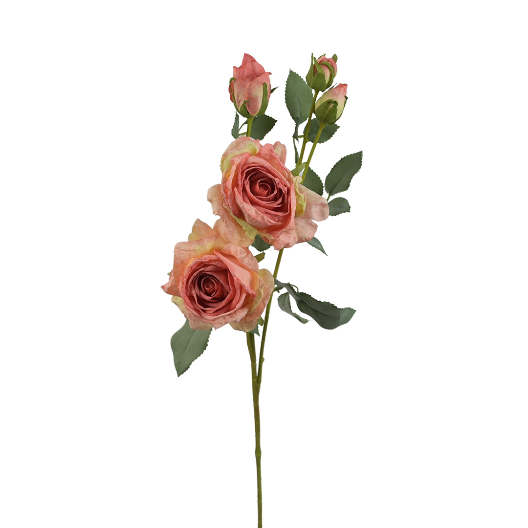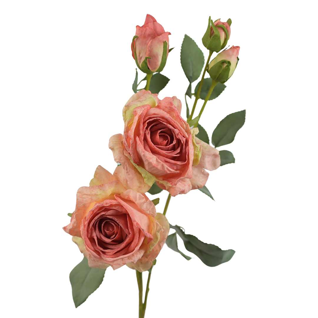 Sztuczna róża suszona gałązkowa w kolorze łososiowym 68 cm