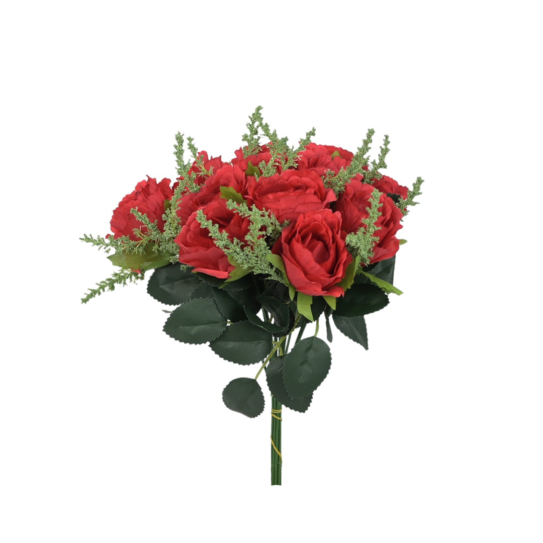 Czerwony kolor wprowadza do kompozycji wyrazisty, klasyczny akcent i sprawdza się w dekoracjach okolicznościowych. Prosta forma róży dobrze pasuje do stroików nagrobnych, wianków, dekoracji świątecznych oraz kompozycji walentynkowych. Zastosowanie piku umożliwia stabilne mocowanie kwiatu w aranżacji, bez wpływu na jego formę. Trwałe materiały wykorzystane przy produkcji pozwalają zachować kształt i kolor róży przez długi czas bez konieczności pielęgnacji.