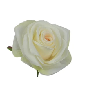 Sztuczna róża z listkiem w kolorze białym z brzoskwiniowym środkiem 10 cm