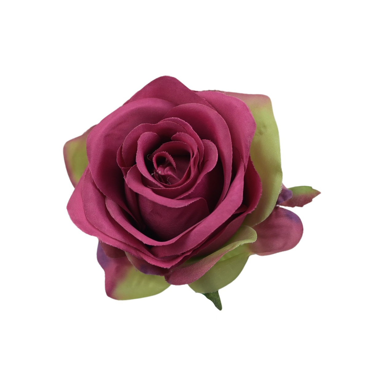 Sztuczna róża z listkiem w kolorze biskupim 10 cm
