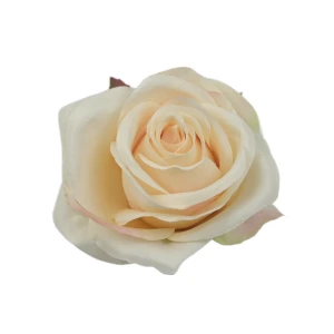 Sztuczna róża z listkiem w kolorze chałwy 10 cm