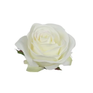 Sztuczna róża z listkiem w kolorze ecru 10 cm