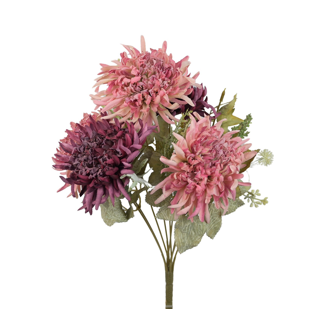 Sztuczny bukiet chryzantemy z dodatkami w kolorze różowo/fioletowym 40 cm