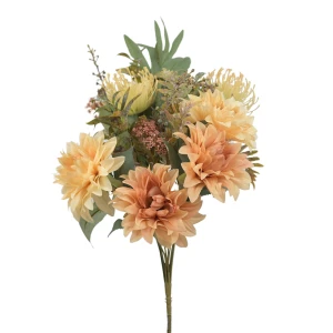 Sztuczny bukiet dalii z plastikowymi dodatkami w kolorze łososiowym 50 cm