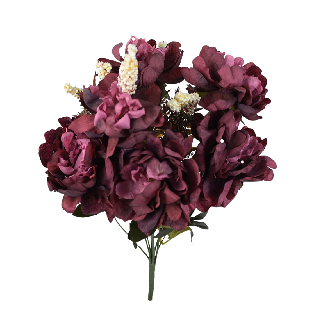 Sztuczny bukiet piwonii x6 z dodatkami w kolorze bordowym 47 cm