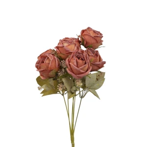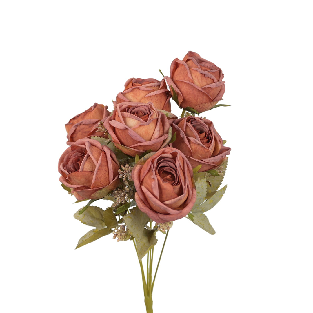 Sztuczny bukiet róży x 7 w kolorze herbacianym 44 cm