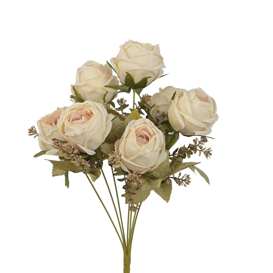 Sztuczny bukiet róży x 7 w kolorze kremowym 44 cm