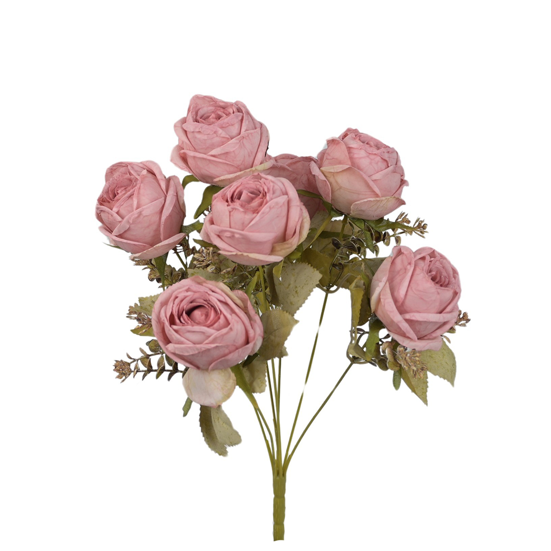 Sztuczny bukiet róży x 7 w kolorze różowym 44 cm