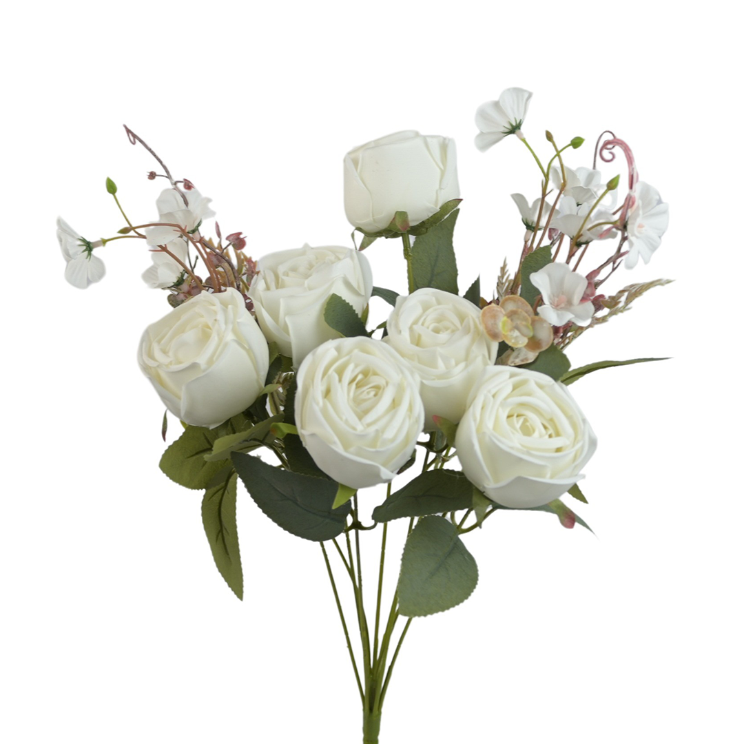Sztuczny bukiet róży x6 w kolorze białym 47 cm