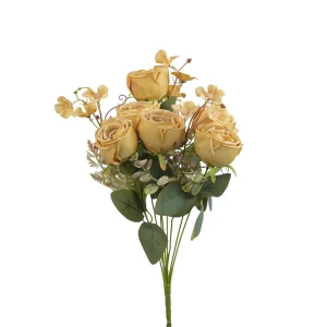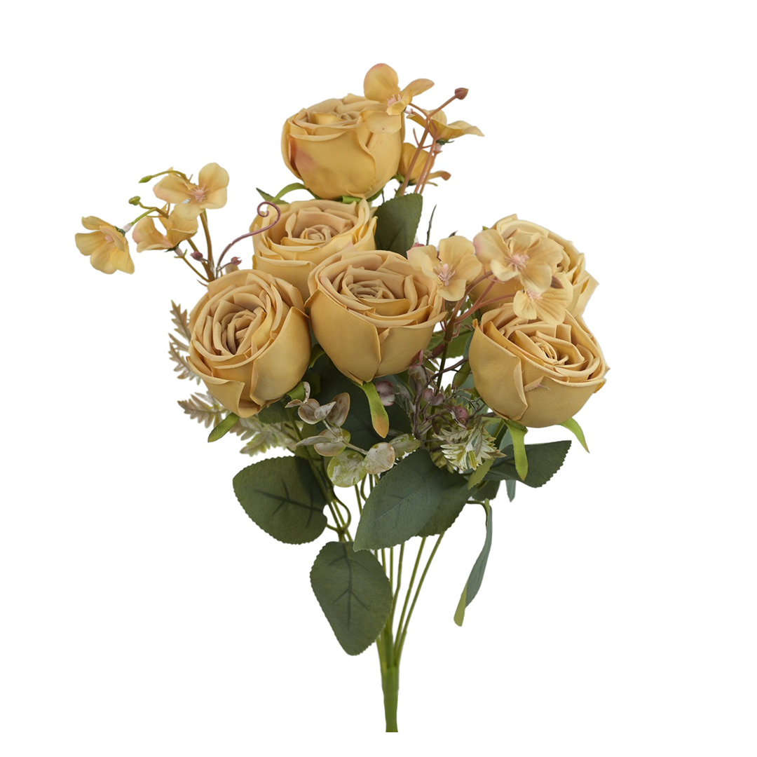 Sztuczny bukiet róży x6 w kolorze brudnym żółtym 47 cm