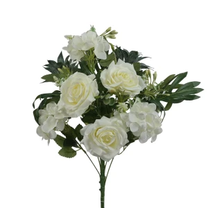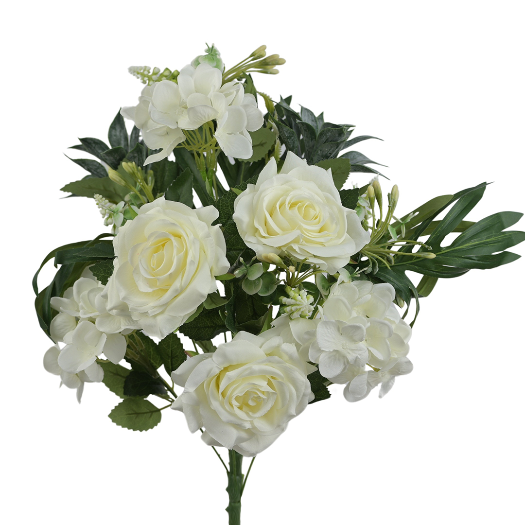 Sztuczny bukiet róży z dodatkami w kolorze białym 52 cm