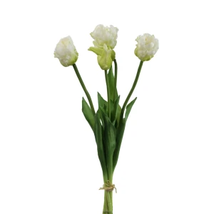 Sztuczny gumowy tulipan papuzi w wiązce w kolorze białym 47 cm